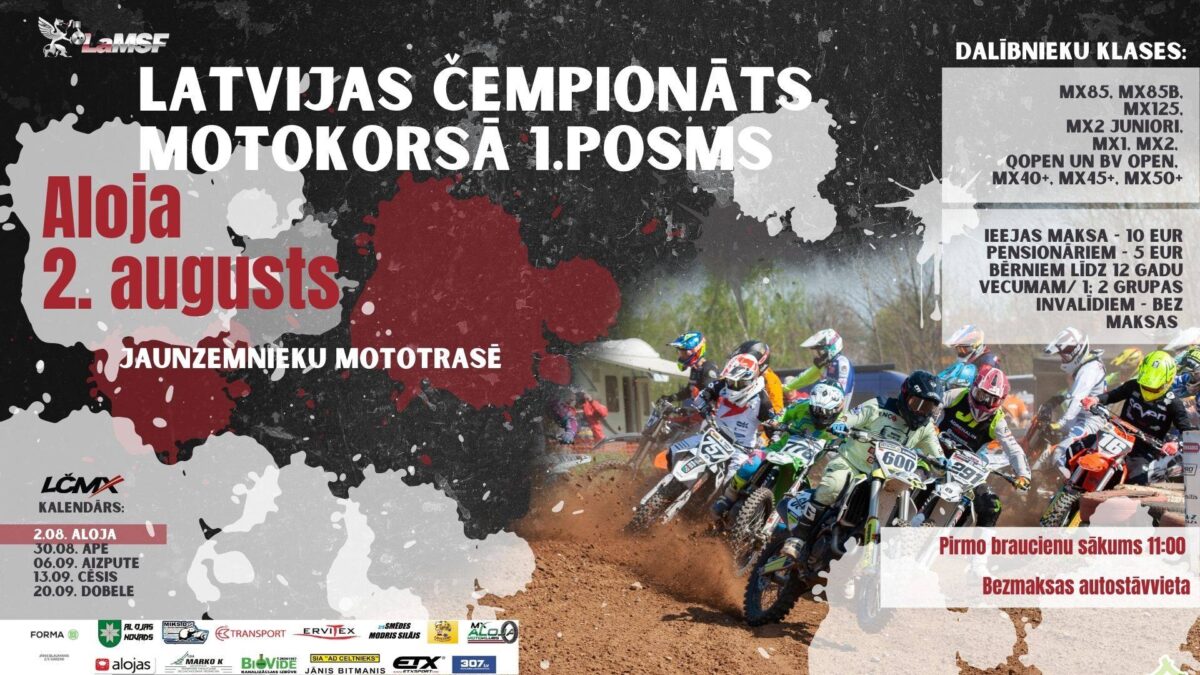 2. augustil peeti Alojas 2020 aasta Läti motokrossi meistrivõistluste etapp. Mõõtu võeti 85cc, juunioride MX125, MX2, MX1, külgvankrite, quadide ja veteranide mitmetes erinevates klassides.